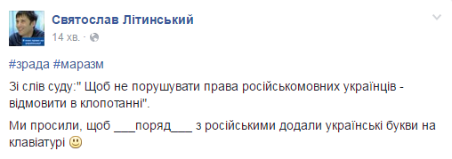 Сихівський районний суд м. Львова, а саме суддя Горбань О.Ю., відхилив клопотання про додавання українських літер поряд з російськими на клавіатурах, “щоб не порушувати права російськомовних”.