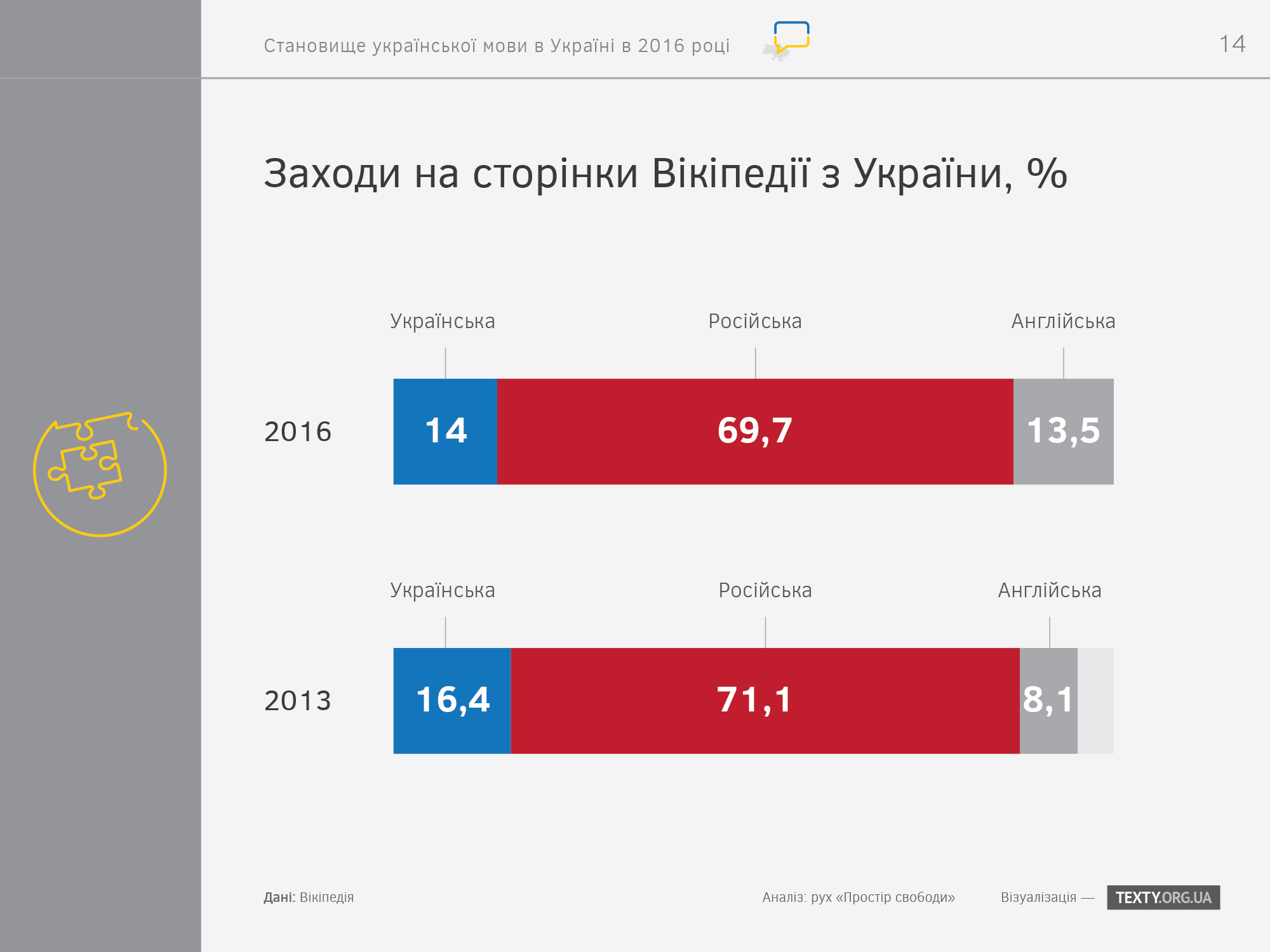 Мова українського сегменту Інтернету – переважно російська. Разом з тим українські користувачі частіше використовують українську мову в мережі Фейсбук.